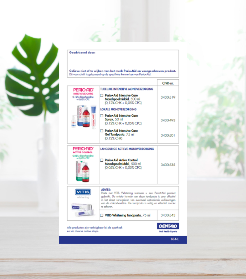 Om uw patiënt gemakkelijk van een juist Perio.Aid productadvies te voorzien.